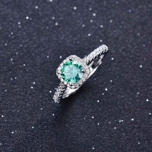 Blue Green Zircon Ring Classic 1 Karat Square Bag Luxury Niche Women's Ring